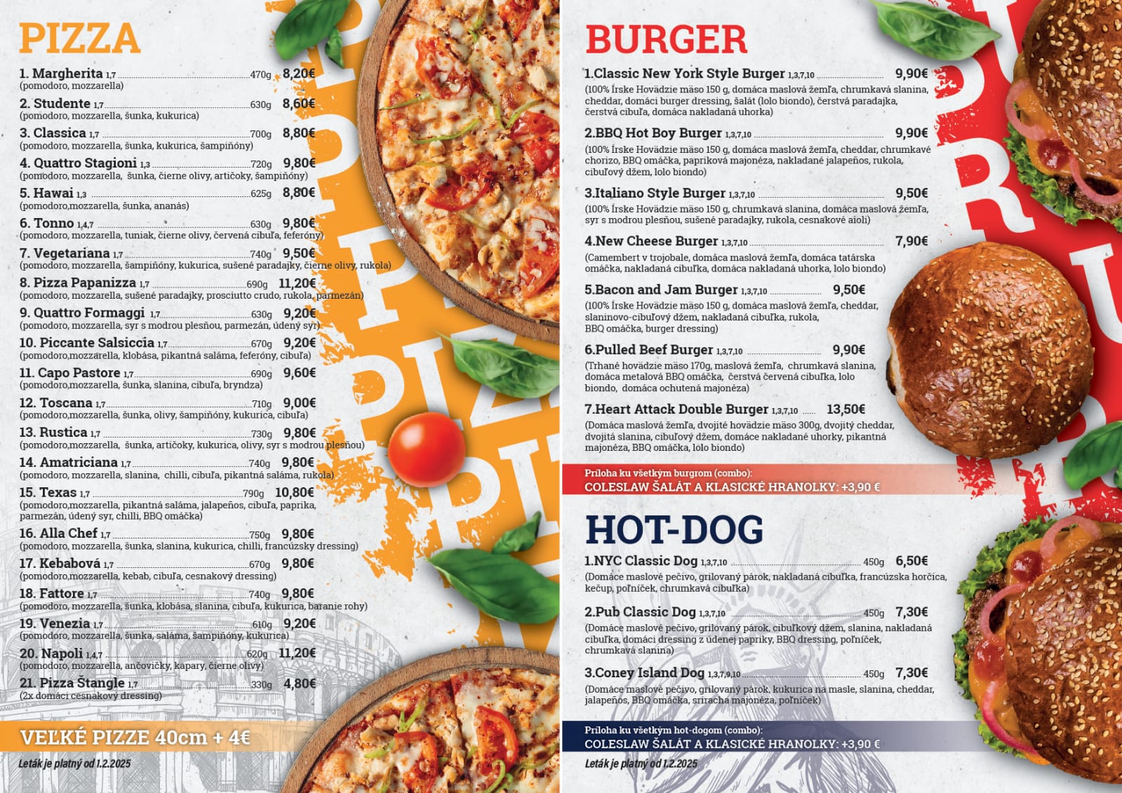 Príďte ochutnať pravú taliansku pizzu, šťavnaté burgery a skvelé hot-dogy.